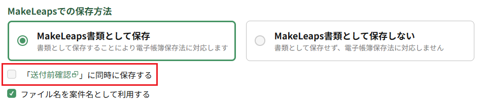 上記の設定を利用してPDF一括送付をおこない、MakeLeaps上で作成された書類を送付すると、送付前確認にご案内文書が添付されるようになります。