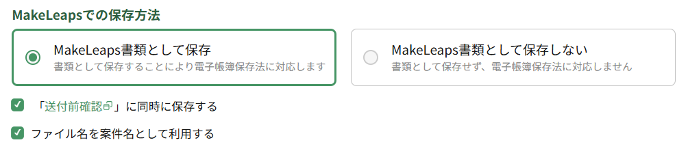 以下からは、それぞれMakeLeaps書類として保存するケースと保存しないケースに分けて説明します。